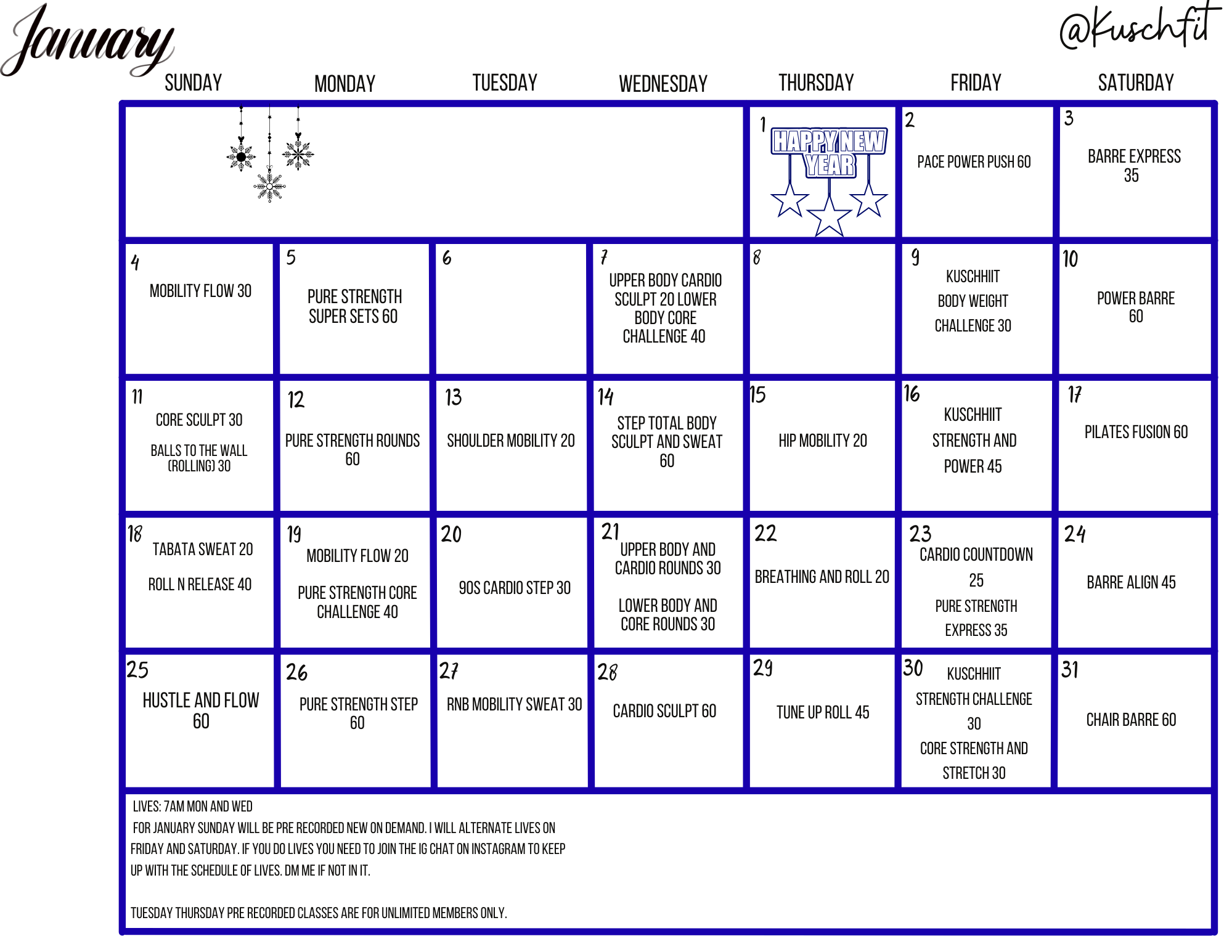All live classes are held on Instagram: @Kuschfit